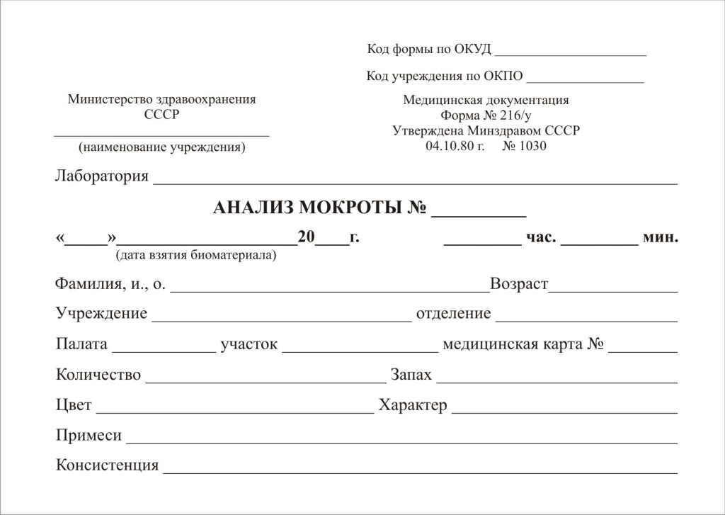 | Анализ мокроты (форма 216/у) | от 700 руб. |