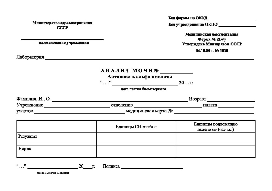 Центр работает без выходных, перерывов на обед, поэтому можете обращаться к нам в любое время. Все предоставляемые анализы оформляются на бланках установленного образца, клиника имеет все разрешения и лицензии на осуществление такого вида деятельности. С помощью исследования мочи на активность альфа-амилазы можно выявить проблемы с работой желудочно-кишечного тракта, такие как холецистит, сахарный диабет, доброкачественные образования в поджелудочной железе. В нашей клинике Вы можете сдать анализ мочи формы 211/у и другие анализы.