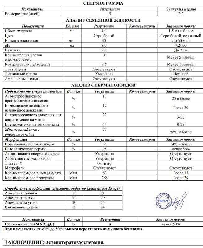Если все характеристики в пределах нормы, то ставится заключение — нормоспермия или нормозооспермия. Если же выявляется какие-то проблемы, врач принимает меры по их устранению, назначает индивидуальное лечение.
