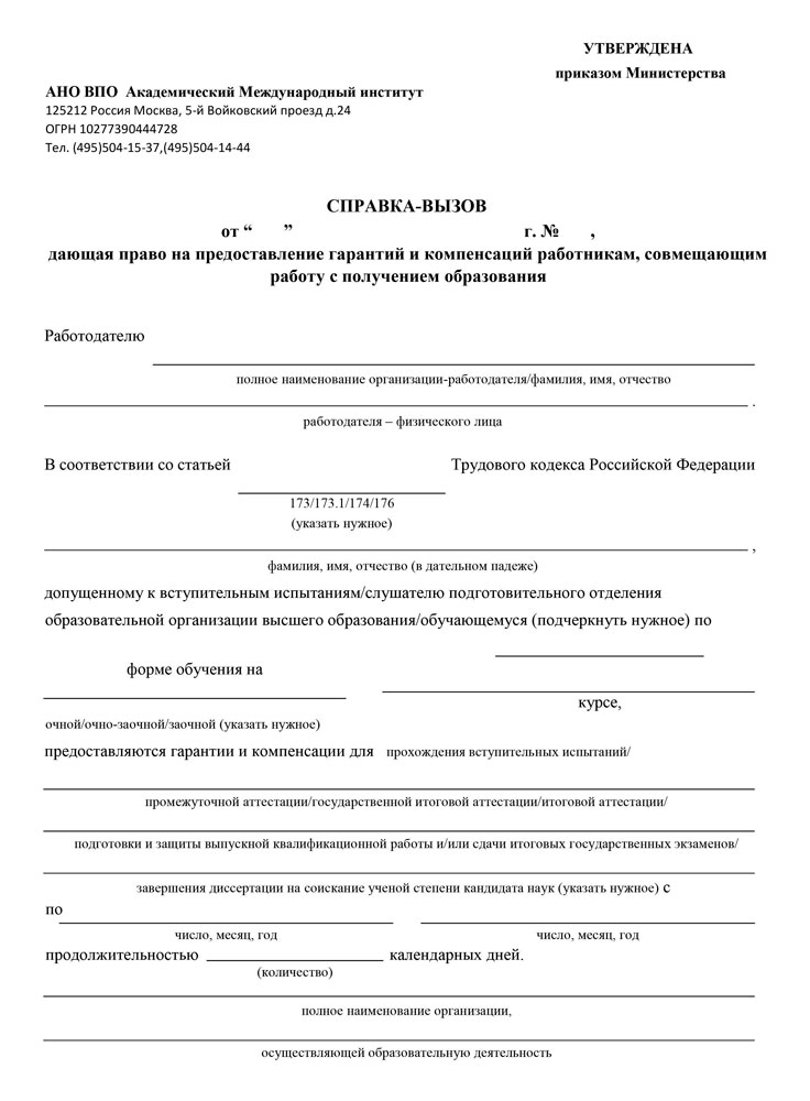 Как оформить справку вызов на сессию?