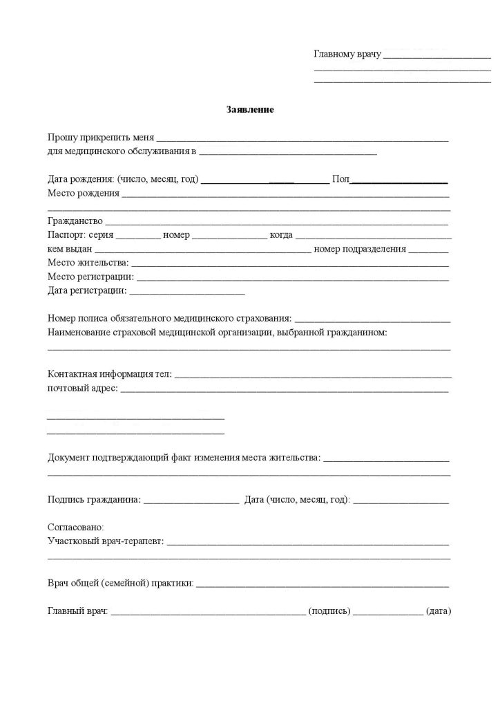 | Заявление на прикрепление к поликлинике | от 1000 руб. |