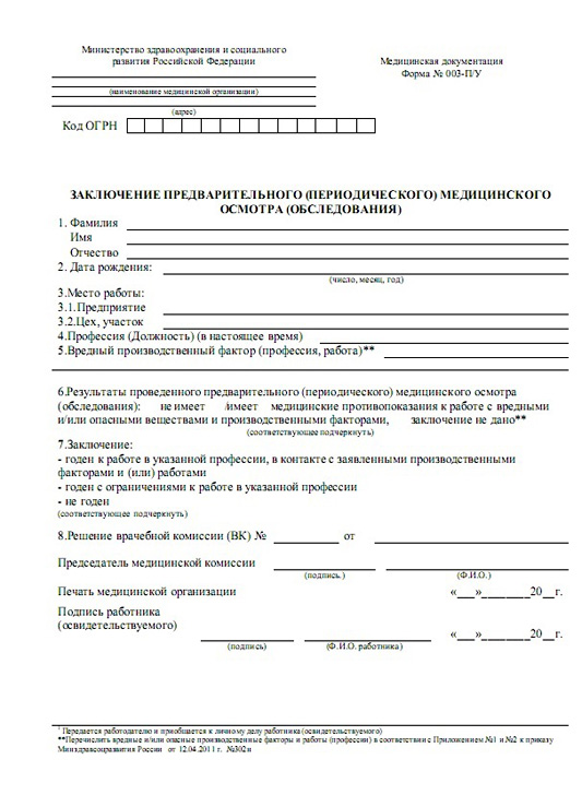 Полный перечень работ и должностей, для которых требуется такой документ, содержится в официальном приказе Минздрава РФ № 302н. Благодаря её предоставлению, работодатель сразу и максимально точно определить пригодность гражданина к должности, определить присутствие противопоказаний.